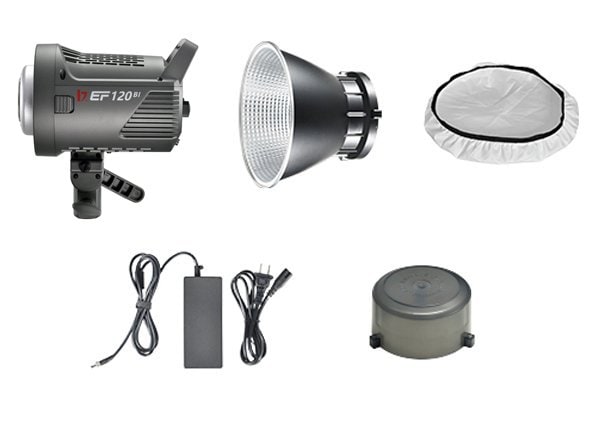 照度は1m、5500K、リフレクター使用で28200 lx、2700~6500Kで色温度調整可能なBi-Colorタイプです。