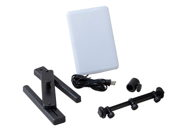 LEDライトを取り付ける3関節アームは多様な角度調節ができ、H型台座は安定感があります。