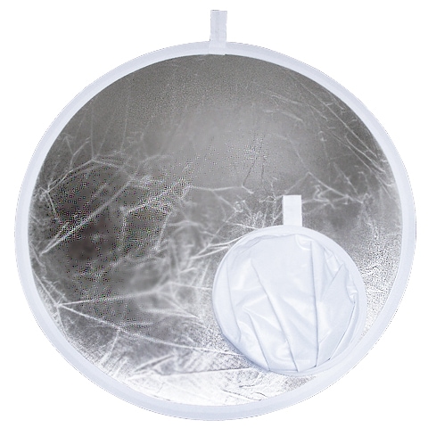 ①レフ板外側の金枠(リム)を右手親指は上に、左手は親指を下にして逆手になるように持ちます。